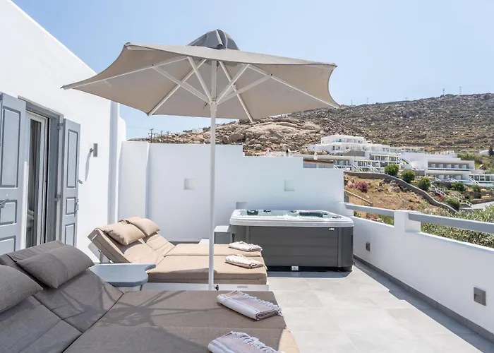 奥诺斯Blue Waters Mykonos公寓设有大厨房和配办公桌,咖啡/茶设施 和休息区的客房. 公寓距离卡特米利风车有2.8公里,入住公寓的客人在该地区游览会很方便.